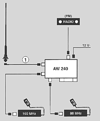 AW 240 Antennenweiche Funk (2m) / Funk (4m) / Radio mit aktivem Radiopfad